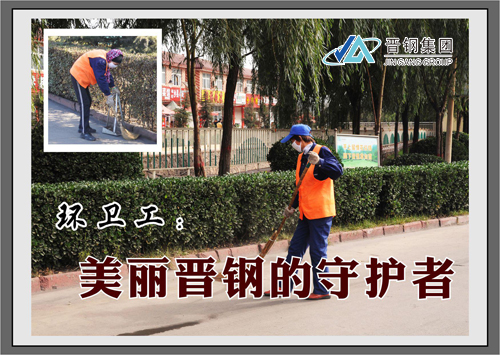 環(huán)衛(wèi)工——這個普普通通的群體,擔負著集團公司環(huán)境清潔和美化工作,被人們親切地成為公司形象的“美容師”。不論春夏秋冬,不畏嚴寒酷暑,他們風雨無阻,辛勤工作,為了公司的干凈整潔,默默無聞的奉獻著。是他(她)們,用勤勞的雙手和特有的“畫筆”描繪了晉鋼美麗的風景。
