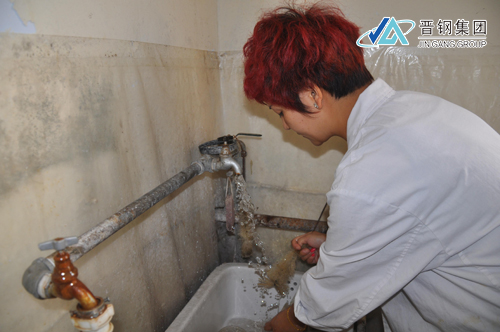 圖-陳麗青在樓下水房提取當(dāng)天所需用水