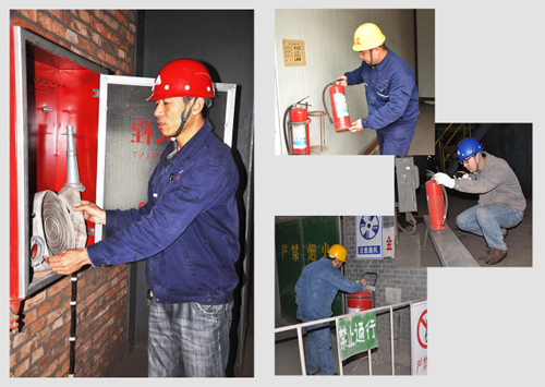 消防設(shè)施是否處于有效使用狀態(tài)是安全員安全檢查的一項(xiàng)例行性工作。圖為安全員在檢查消防設(shè)施。