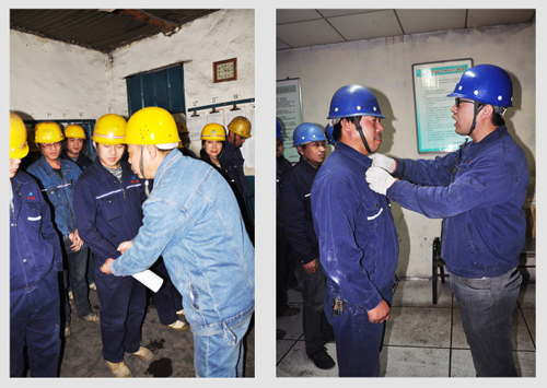 眾所周知,在生產(chǎn)作業(yè)中,勞保用品可以起到專門防御傷害的作用,是員工的“護(hù)身符”。圖為安全員在為員工示范正確穿戴勞保用品。