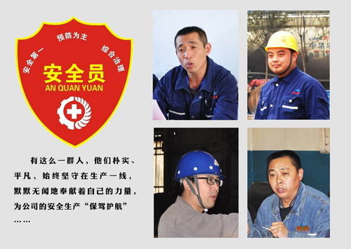安全員、保安全,安全重?fù)?dān)挑在肩;現(xiàn)場秩序要維護(hù),職工安危要照管;有時(shí)動嘴做指導(dǎo),有時(shí)動手做示范;八個小時(shí)滿廠轉(zhuǎn),一心一意保安全。